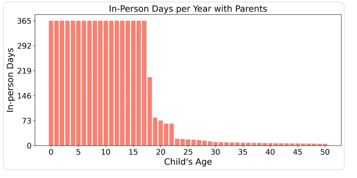 A few weeks ago, I started seeing the same graph popping up in my various social media feeds, often with the caption that said something like “by the time you are 18, you’ve already spent 90% of the in-person time you’ll ever spend with your parents.”