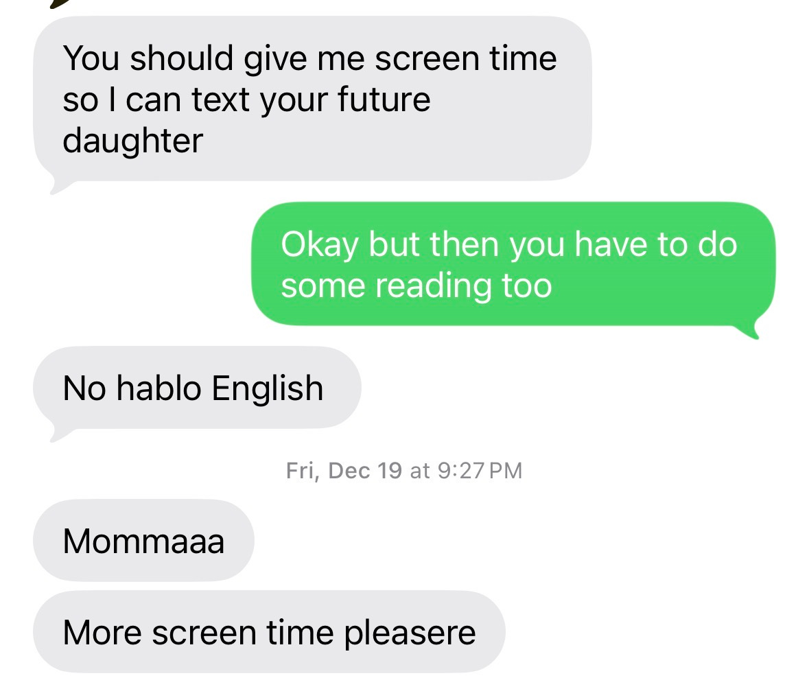 Deciding when to let our son have his first cell phone felt like a REALLY big decision and trying to figure out how to limit his ability to make stupid choices with his phone felt even bigger. I worried a lot about all the things: screen time and social media and bullying and expanding his ability to find the grossest corners of the internet (either on accident or on purpose). I worried about it a lot before we got him his first phone and I probably could have reduced my worry level by about 30% if I had realized how entertaining it would eventually be to be on the receiving end of texts from my teenager2.